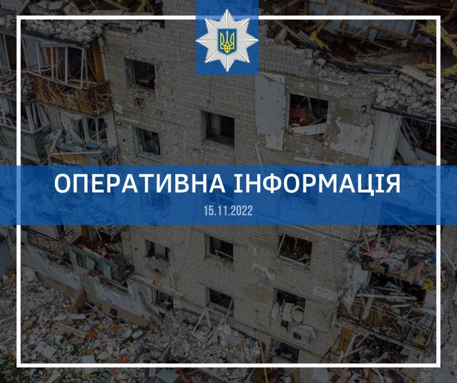 Протягом минулої доби, 14 листопада, поліцейські області отримали 8 повідомлень про руйнування житла мешканців міст Сєвєродонецьк та Попасна внаслідок артилерійських обстрілів армією країни-агресора – ст. 438 КК України «Порушення законів та звичаїв війни».
