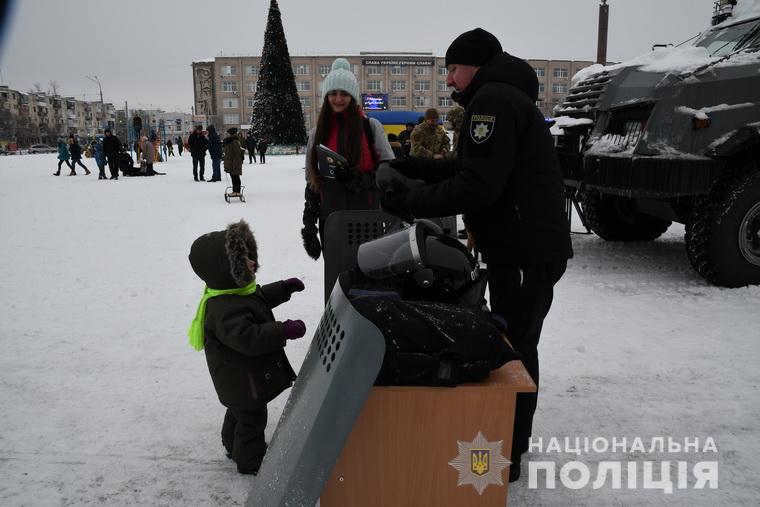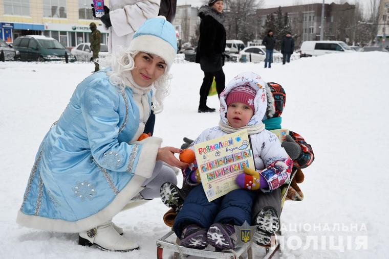 Незважаючи на морозну погоду, на головній площі м. Сєвєродонецьк аби відзначити Різдво з поліцейськими зібралися дітлахи разом зі своїми батьками. Луганські поліцейські підготували для дітей чимало розваг з іграми, музикою та солодощами.