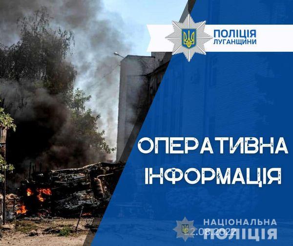 Минулої доби, 21 серпня, до поліції області надійшло 9 повідомлень, серед яких 2 про пошкодження домоволодіння мешканки м. Попасна та квартири сєвєродончанки. За даними фактами слідчими відкриті кримінальні провадження за ст.438 (Порушення законів і звичаїв війни) КК України.