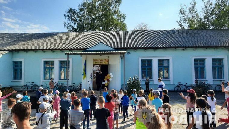 Поліцейські спільно з школярами виконали комплекс корисних фізичних справ, а на останок гості в погонах нагадали дітям правила дорожньої безпеки.