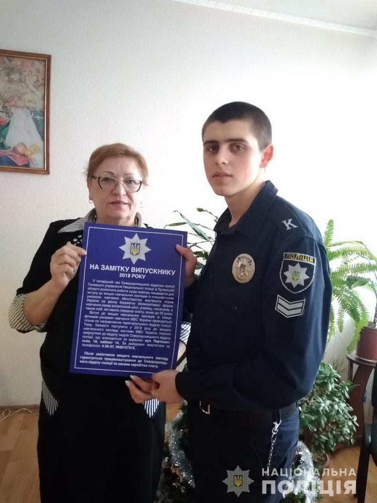 Хто, як не курсанти вищих навчальних закладів зі специфічними умовами навчання, краще розкажуть учнівській молоді про свій вибір професії та порядок вступу до навчальних закладів системи МВС. Саме тому, разом з дільничними офіцерами поліції та інспекторами ювенальної превенції курсанти, які проходять практику у територіальних підрозділах поліції Луганщини, відвідують школи з корисною інформацією.