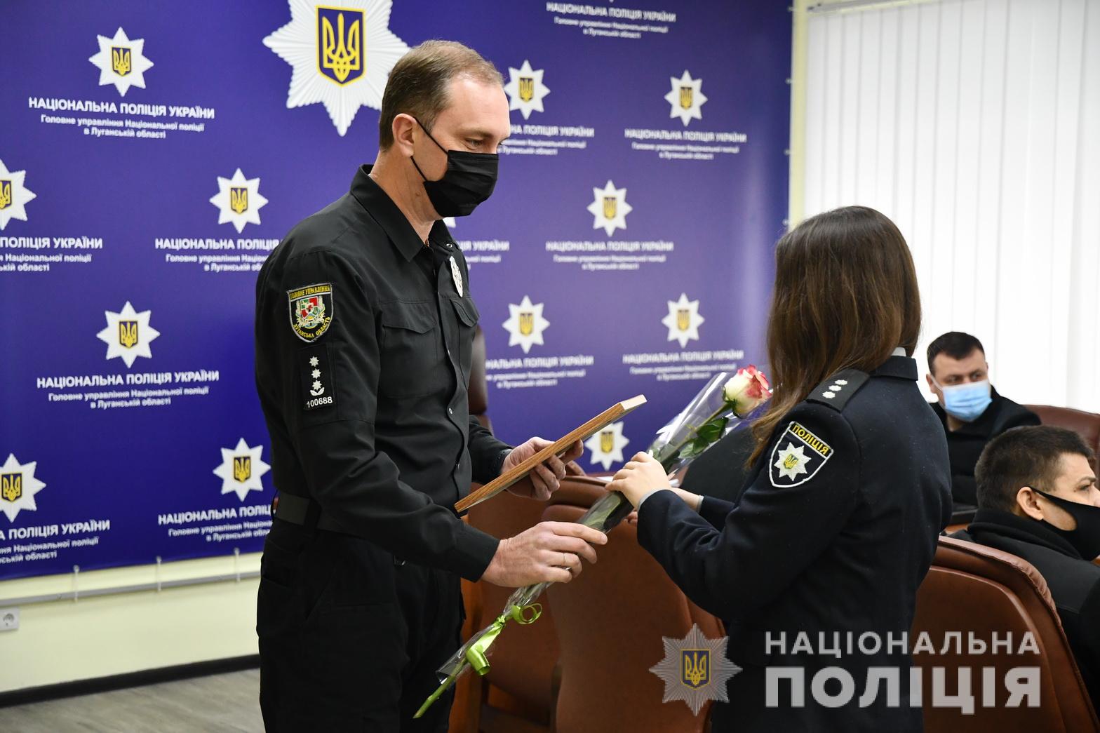 Сьогодні, 26 січня, під час щоденної ранкової оперативної наради, очільник поліції Луганщини Олег Григоров вручив співробітникам поліції подяки та грамоти Національної поліції України та Луганської обласної державної адміністрації, оголосив наказ про присвоєння чергового спеціального звання та побажав подальших успіхів у сліжбовій діяльності.