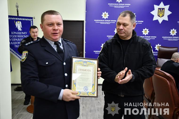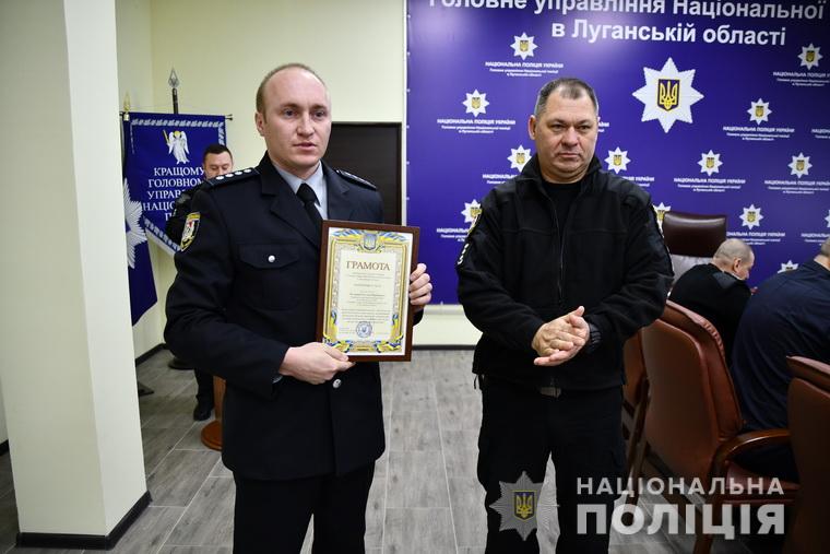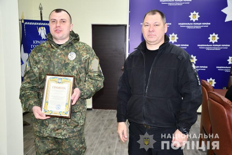 Зі словами подяки за сумлінну службу Сергій Колесник вручив Почесні грамоти співробітникам Новоайдарського відділу поліції Руслану Луговому та Роману Русінову та старшому інспектору управління превентивної діяльності ГУНП в Чернівецькій області Валентину Рябому.