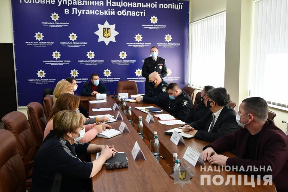 Сьогодні, у приміщенні Головного управління Національної поліції в Луганській області, під головуванням очільника поліції Луганщини Олега Григорова та голови обласної військово-цивільної адміністрації Сергія Гайдая відбулась нарада щодо продовження розбудови інфраструктури та подальшого впровадження проекту «Поліцейський офіцер громади».