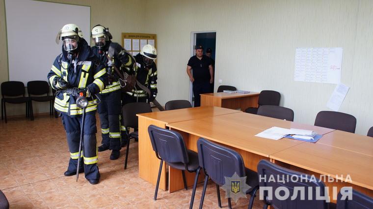 Сьогодні були відпрацьовані спільні дії правоохоронців щодо реагування на виклик до виборчої комісії, евакуація людей, охорона публічної безпеки при пожежі та демеркуризації.