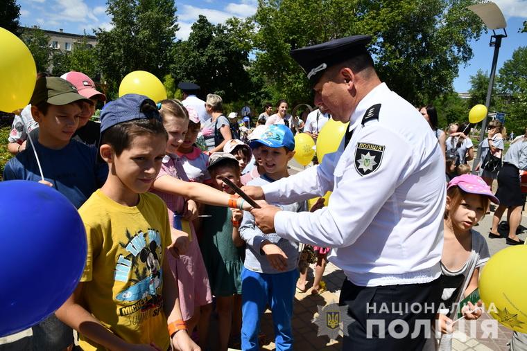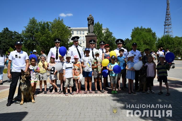 Діточки взяли активну участь у іграх, малювали на асфальті привітання для поліцейських та з радістю фотографувались із чотирилапими помічниками поліцейських.