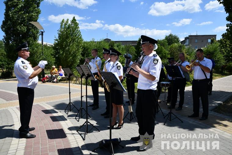 У м. Сєвєродонецьк у сквері ім. М. В. Гоголя святковий настрій мешканцям та гостям міста подарував духовий оркестр поліції Луганської області, малеча, від очільника поліції області Сергія Колесника та його заступників, отримала світловідбиваючі браслети, кульки та солодощі, а їх матусі квіти.