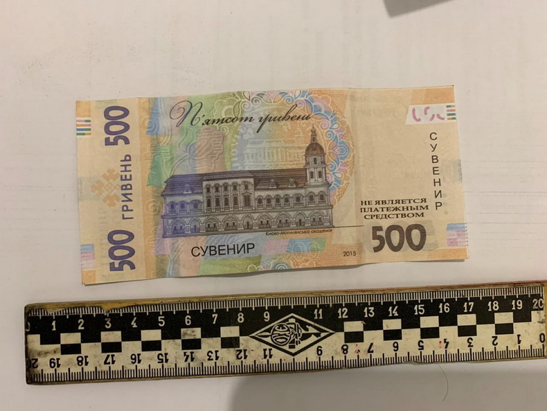 Так, сьогодні, до чергової частини поліції звернулись продавчиня магазину та розповіла про те, що покупець розрахувався за товар грошима, які потім виявилися сувенірною купюрою з позначкою 500 гривень.