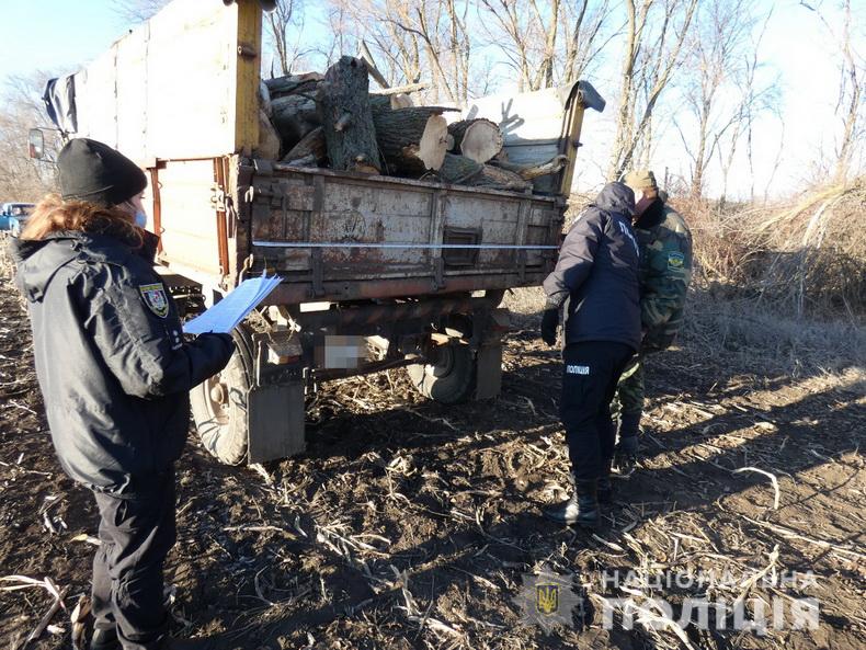 Слідчо-оперативна група, яка виїхала на місце події, встановила, що 5 місцевих мешканців здійснювали незаконну порубку лісу за допомогою бензопили та намагались його вивезти за допомогою трактора з причепом.