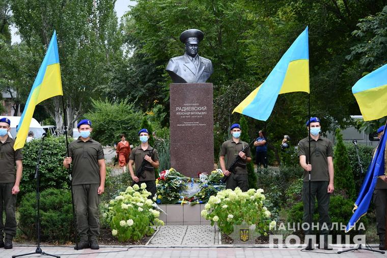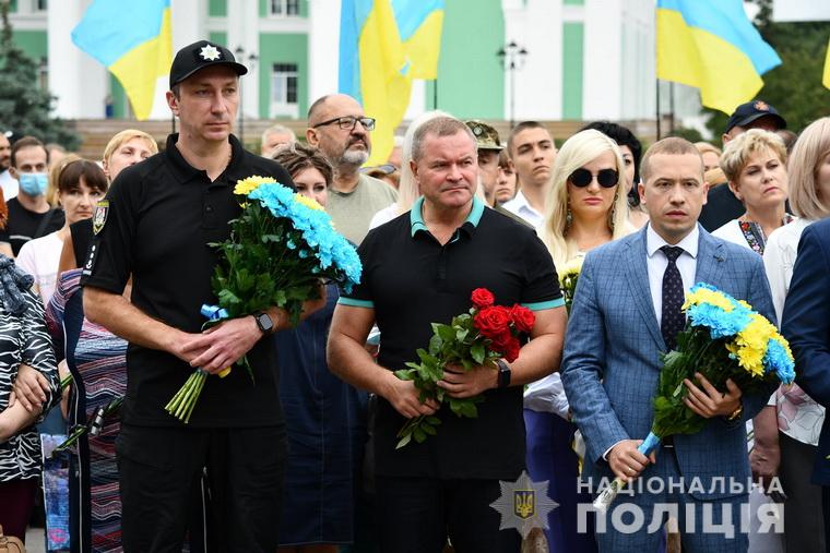 Очільник поліції Луганщини Олег Григоров разом з Головою Луганської обласної державної адміністрації, міської ради, співробітниками силових та правоохоронних структур, а також громадськістю вшанували пам’ять полеглих захисників України хвилиною мовчання та поклали квіти до пам’ятника генерал-майору Національної гвардії України Олександру Радієвському.
