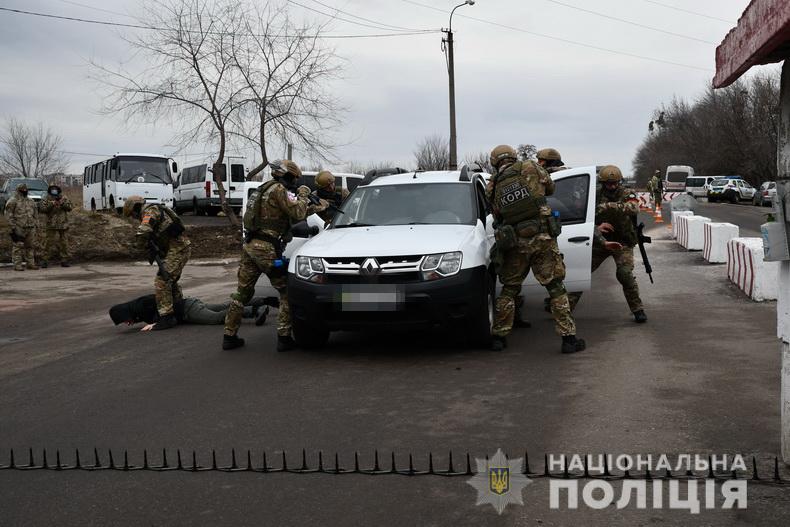 Правоохоронці, які несуть службу на блокпостах у складі ООС, відпрацювали дії у випадках виявлення в автомобілі вибухонебезпечних речовин, у разі збройного нападу та спроби прориву через блокпост групи озброєних злочинців на автомобілі.