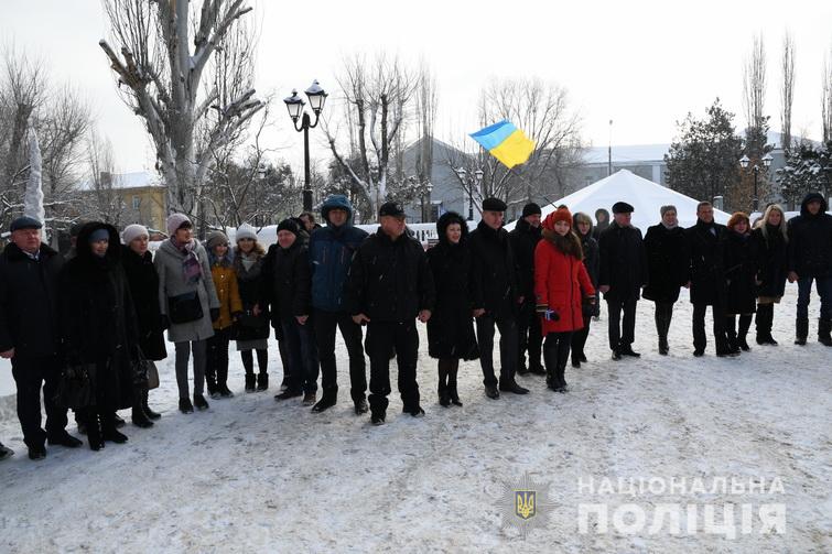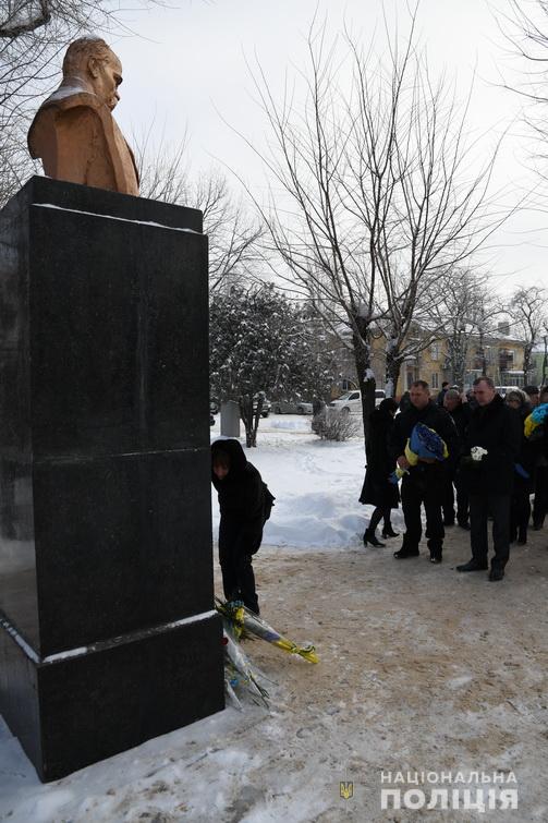 Очільник поліції Луганщини Сергій Колесник разом із представниками обласної влади, керівниками установ, організацій області та громадськістю взяв участь у церемонії покладання квітів до пам’ятника Великому Кобзарю українського народу Тарасу Шевченку. Всі присутні створили «Живий ланцюг єдності», який символізує 100-річчя Злуки українських земель.