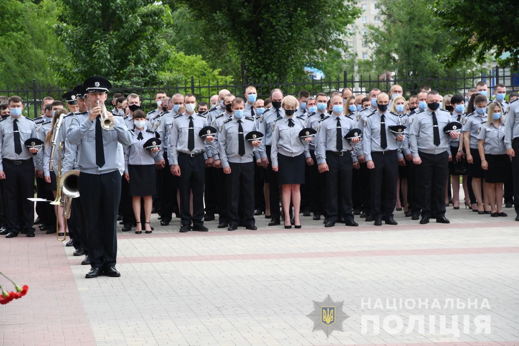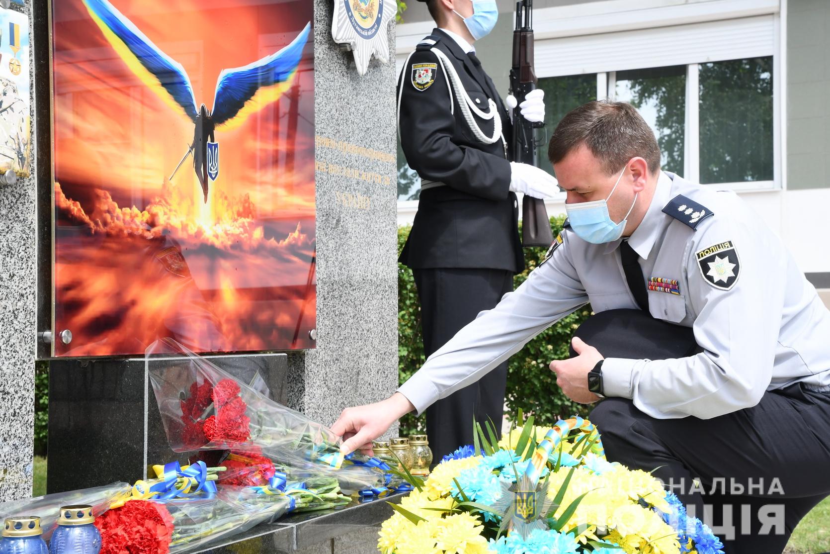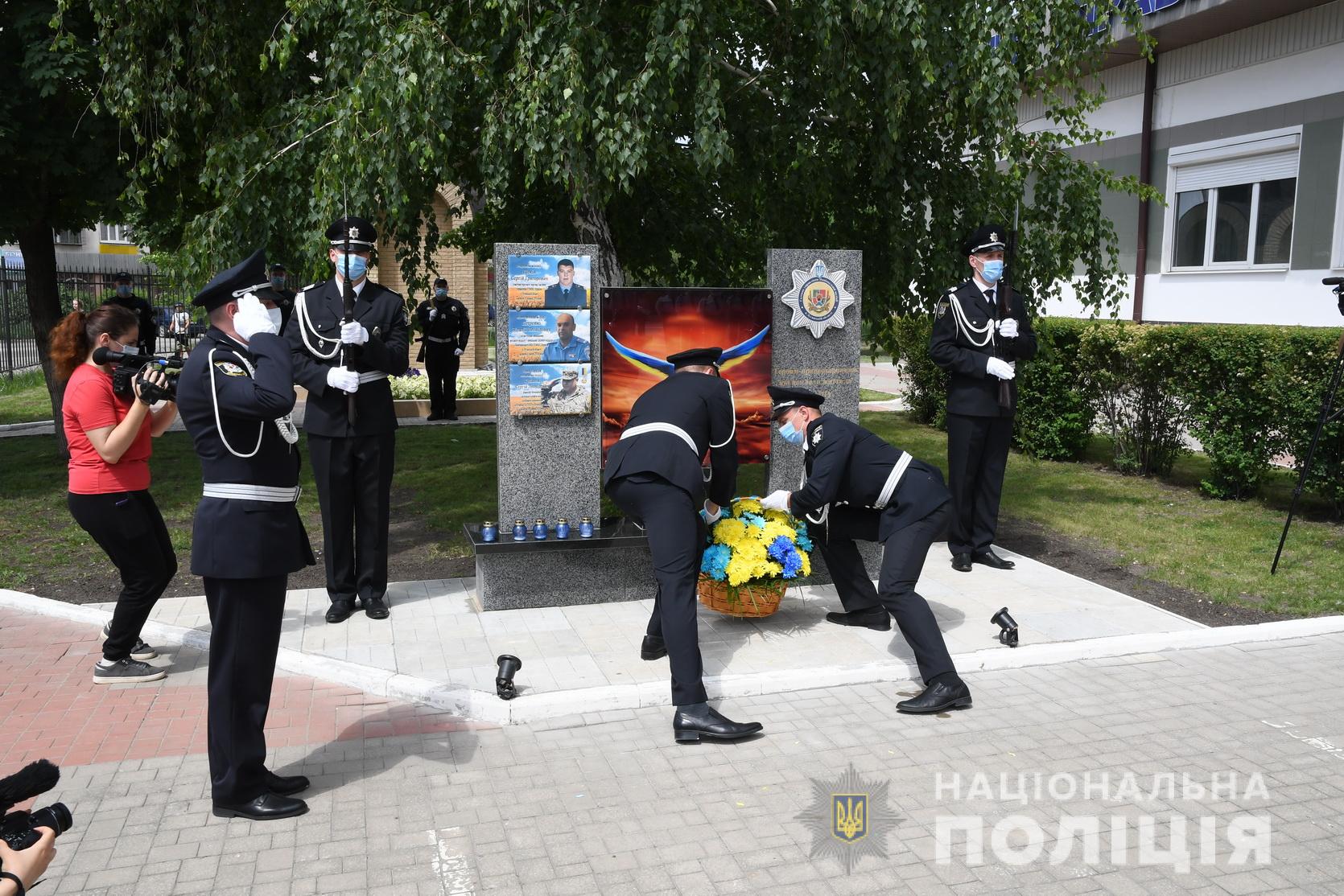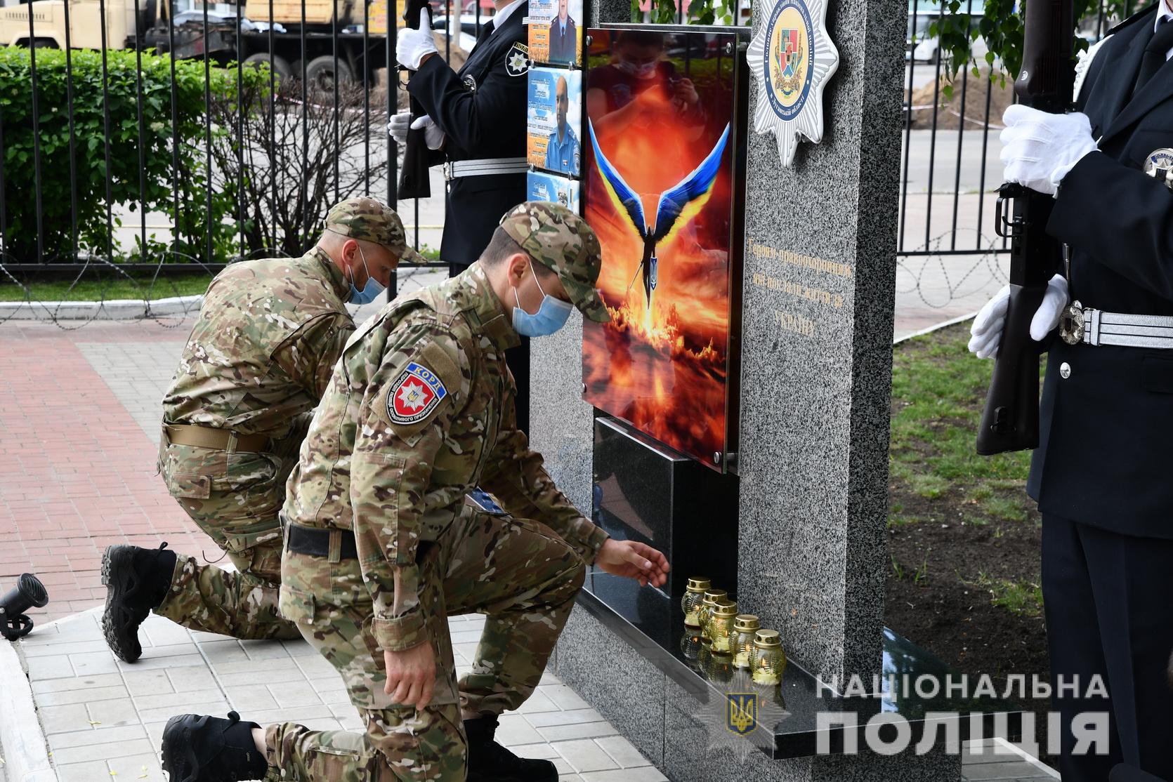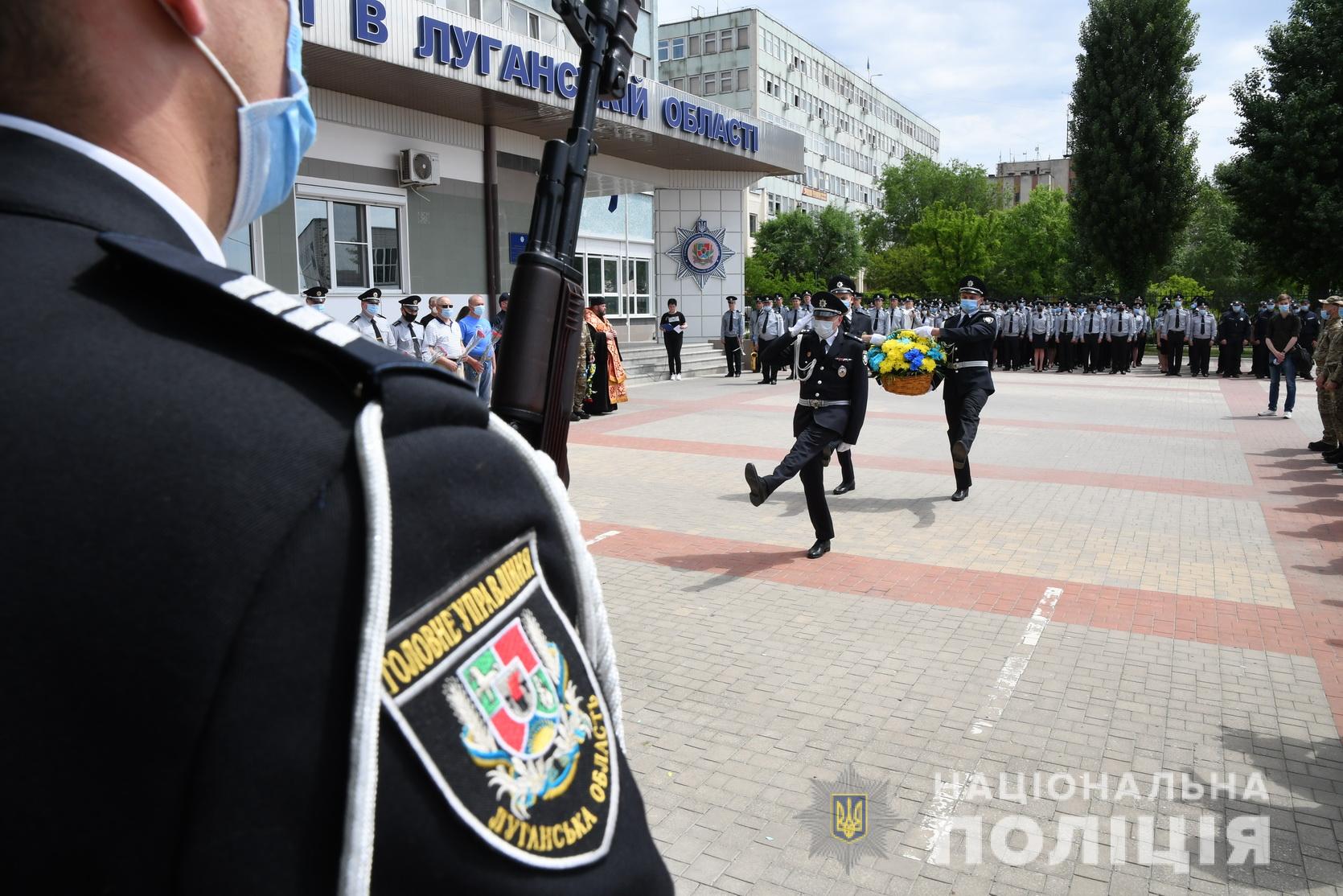 Вшанувати пам'ять загиблих колег прийшли керівництво головного управління, співробітники всіх служб та бійці батальйонів поліції Луганщини. Присутні хвилиною мовчання вшанували пам'ять побратимів та поклали свічки пам’яті та квіти до пам’ятника.