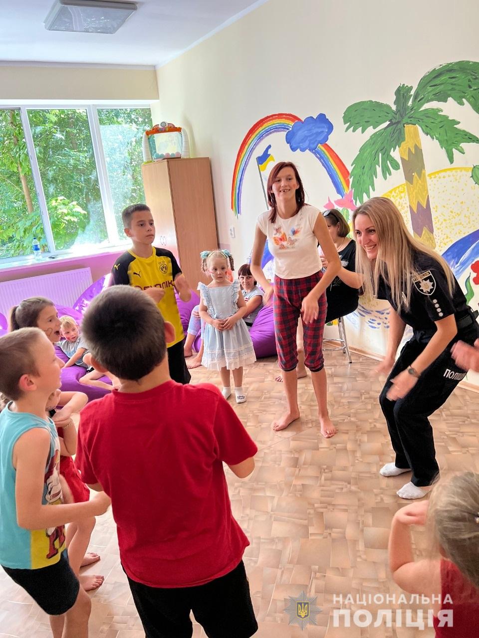 На ці декілька годин діти поринули у райдужний світ розваг – активні та настільні ігри, руханки, аквагрим, а на останок подарунки та солодощі. Все це підготували «дитячі» копи для маленьких земляків. Не забули гості і про безпеку: на дорозі, воді, під час сигналу повітряної тривоги, в разі виявлення потенційно небезпечних предметів.