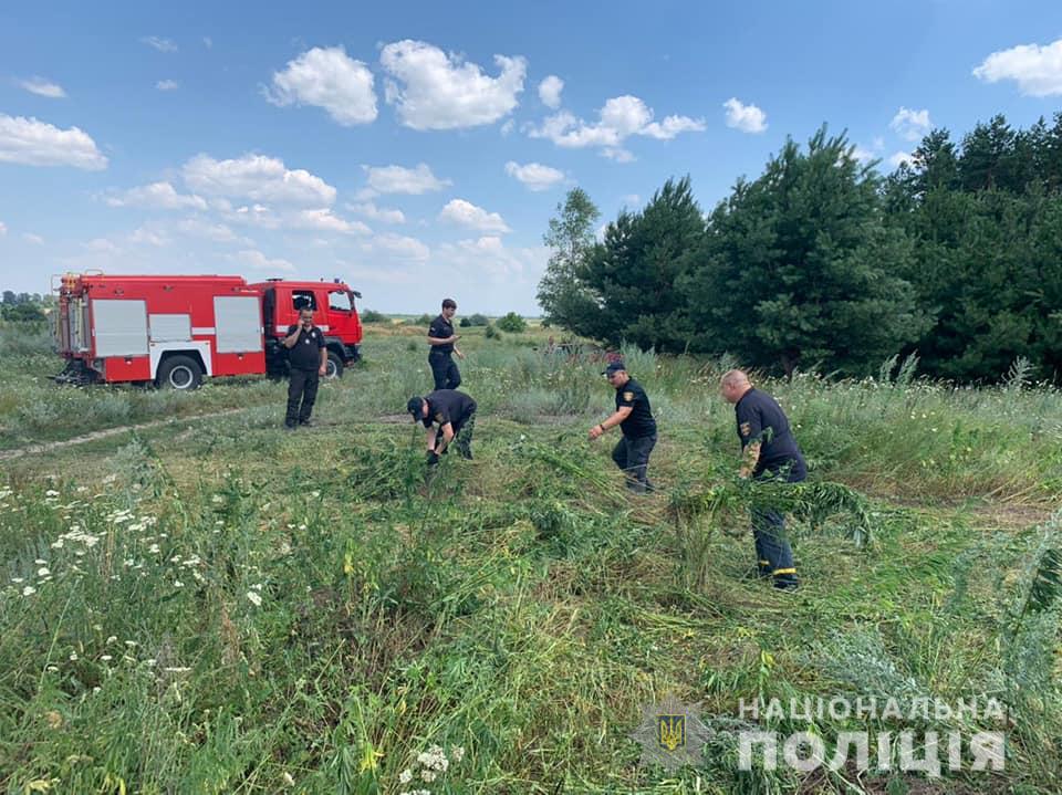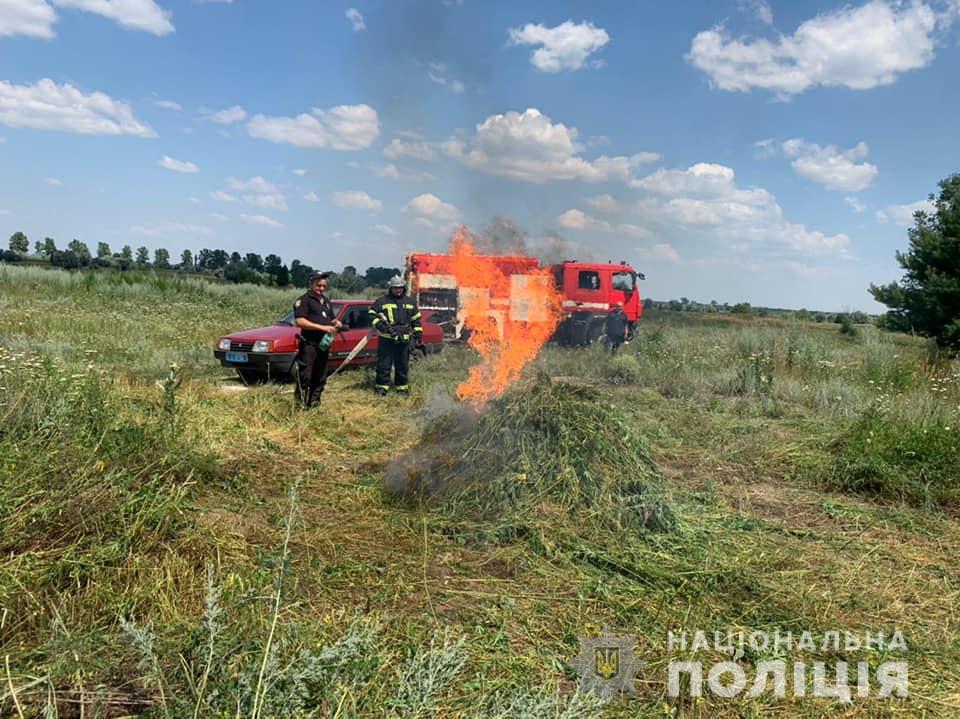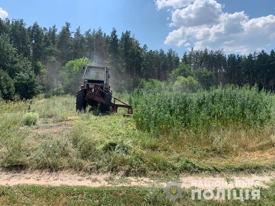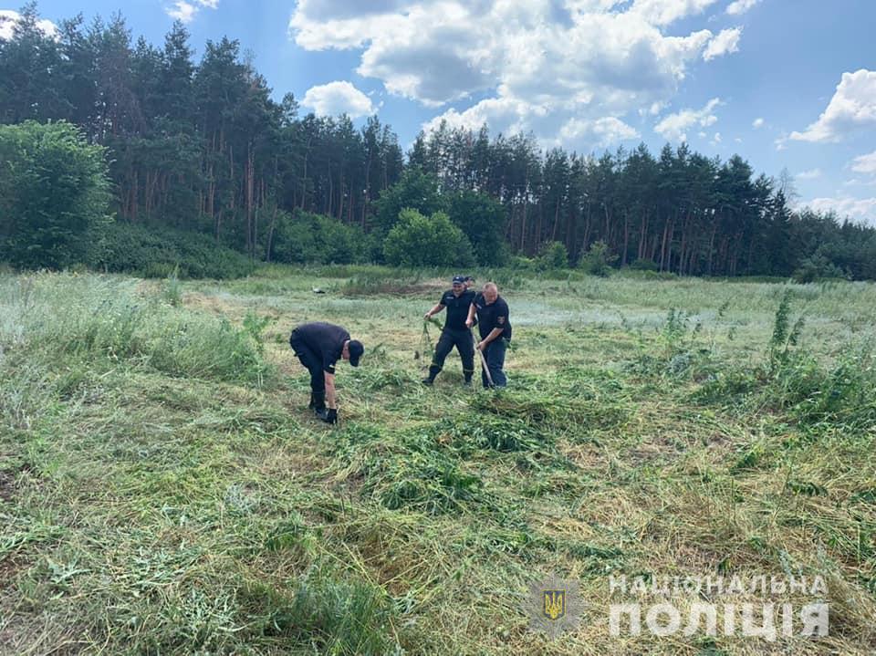 За підрахунками правоохоронців з виявленої ділянки було скошено та знищено близько 8 000 кущів дикоростучої коноплі.