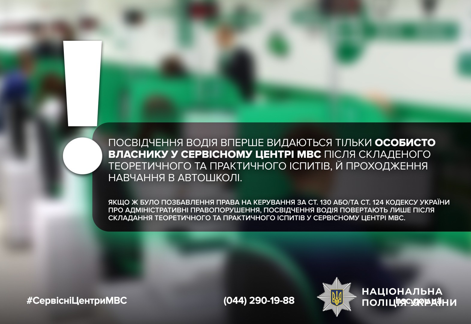 Посвідчення водія вперше видається лише у сервісному центрі МВС після навчання та складання іспитів.