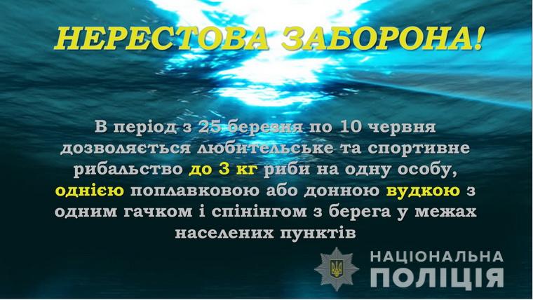 Нагадаємо, за порушення заборони передбачена адміністративна відповідальність у вигляді штрафу, від 34 до 170 гривень. За лов водних біоресурсів із застосуванням заборонених знарядь лову визначений штраф у розмірі від 340 до 680 гривень з конфіскацією знарядь і засобів вчинення правопорушення, які є приватною власністю порушника, та незаконно добутих біоресурсів.