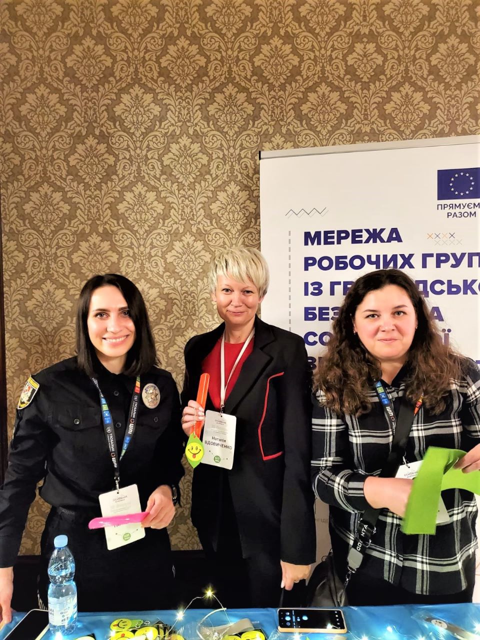 На запрошення мережі робочих груп з громадської безпеки та соціальної згуртованості Луганської області та за підтримки Програми ООН із відновлення та розбудови миру, до обговорення питань розвитку ефективної взаємодії громадського та безпекового секторів приєдналася начальниця відділу ювенальної превенції поліції Луганщини Олена Ткачова.