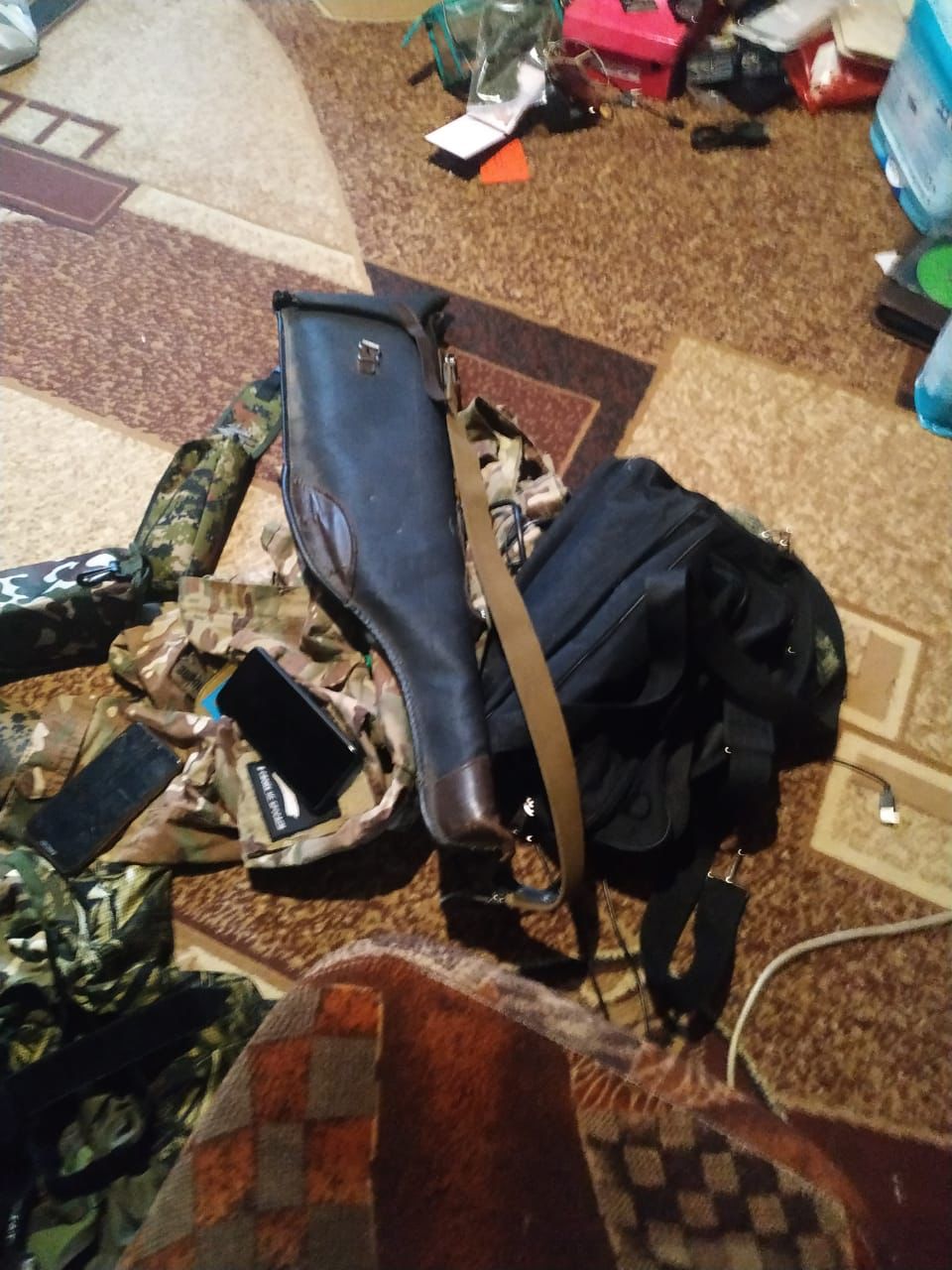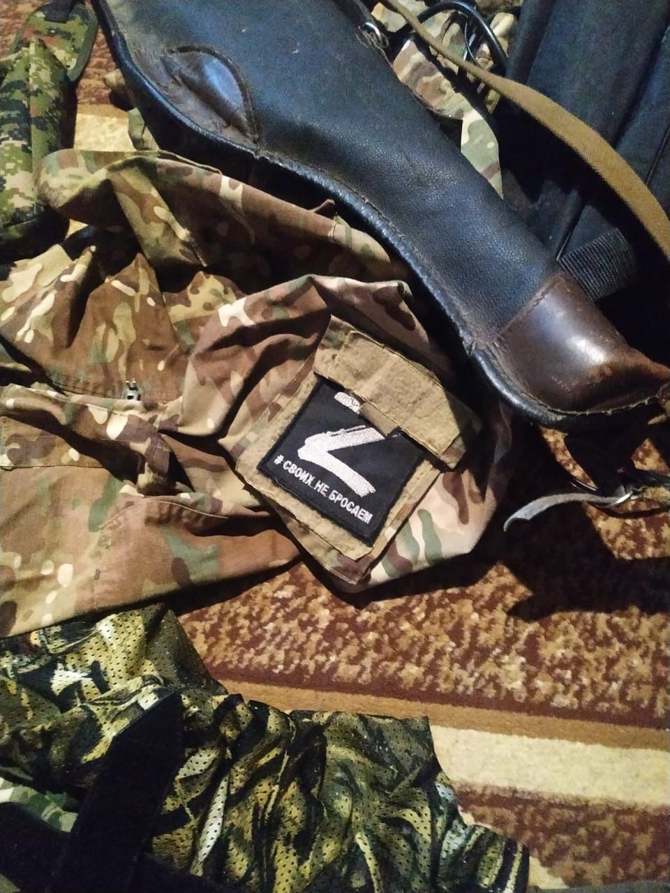 Під час звільнення Збройними силами України від окупантів території Харківської області, тікаючи, окупант залишив у жінки свій військовий одяг з символікою окупаційних військ, вкрадену мисливську рушницю та телевізор.