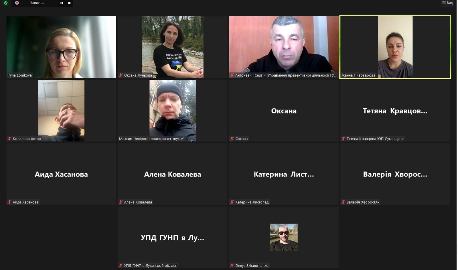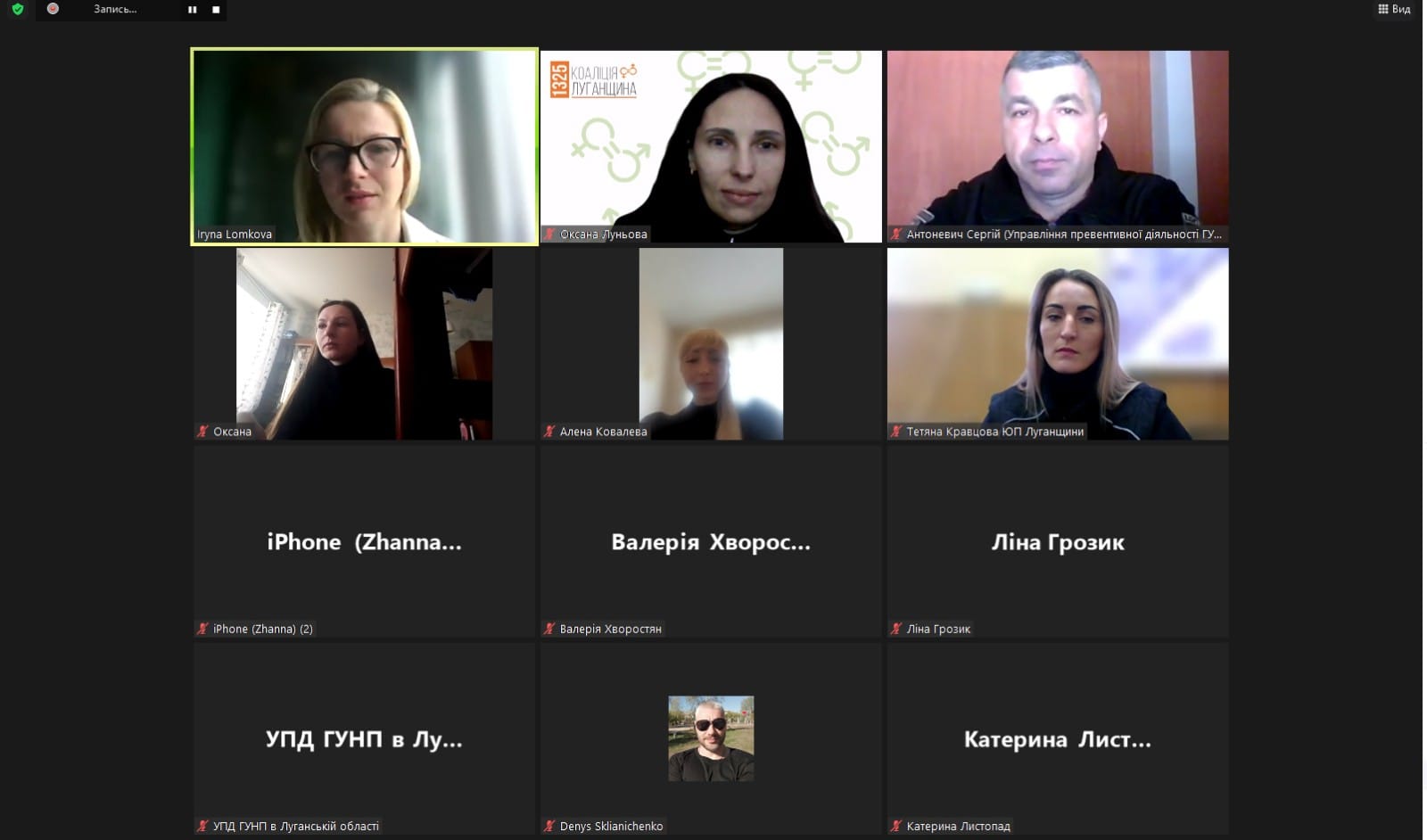 Онлайн зустріч була зорганізована Громадською організацією «Платформа розвитку «СМР»» в рамках реалізації завдань передбачених планом дій з виконання резолюції Ради Безпеки ООН 1325 «Жінки. Мир. Безпека.» на період до 2025 року в Луганській області.