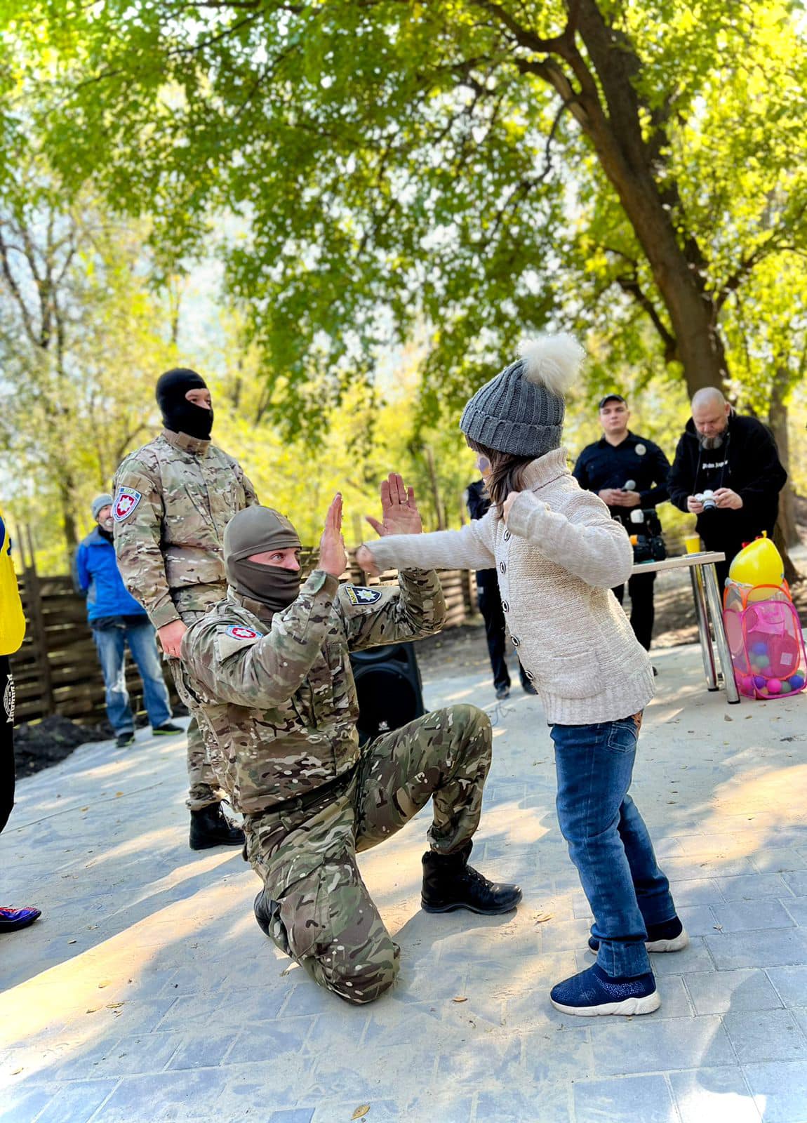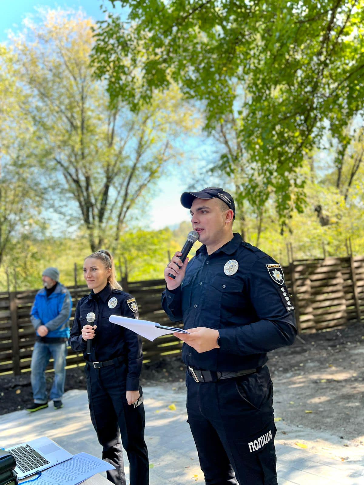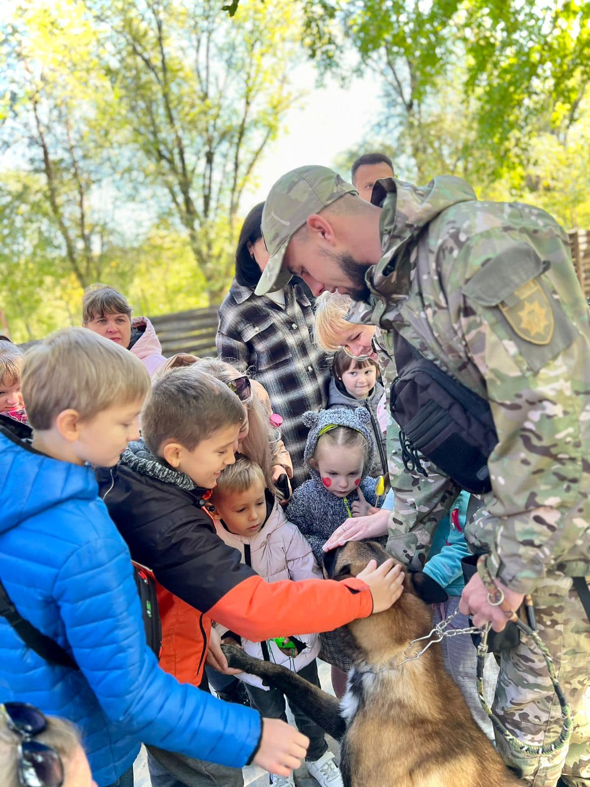 поліцейський пес-розмінувальник. Також усі бажаючи мали змогу ознайомитися з поліцейським екіпіюванням та навіть вдягнути бойовий костюм спецпризначенця.