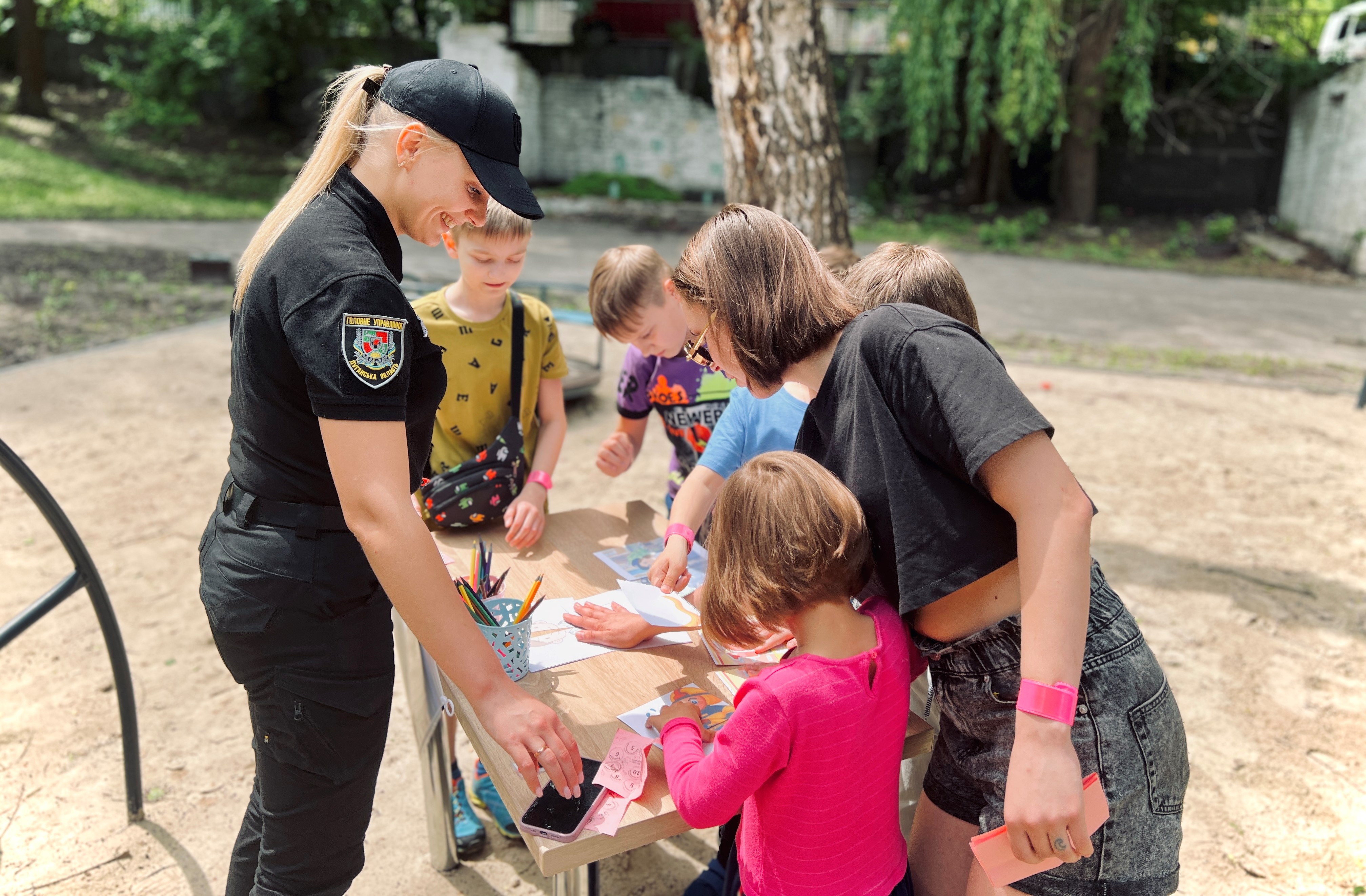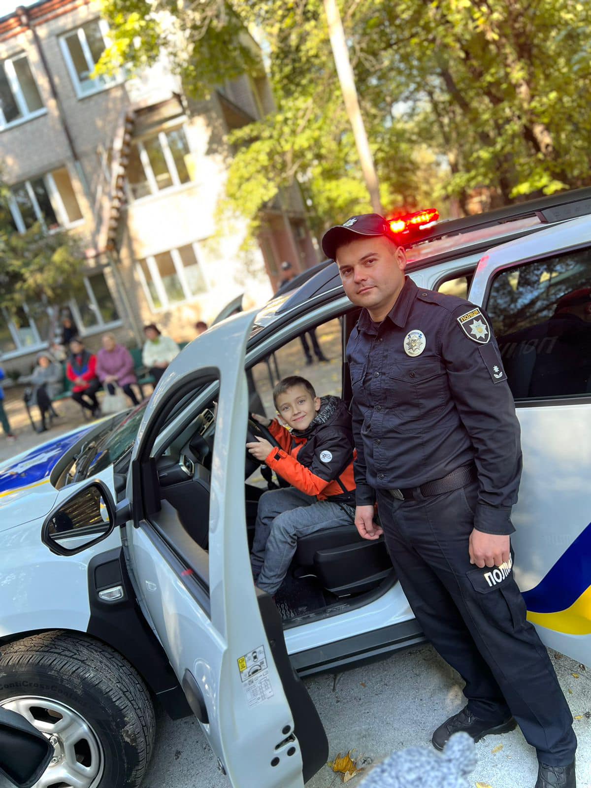 Працівники ювенальної превенції облаштували для дітей декілька локацій. У розпорядженні учасників заходу був службовий автомобіль та чотирилапий помічник Енар -
