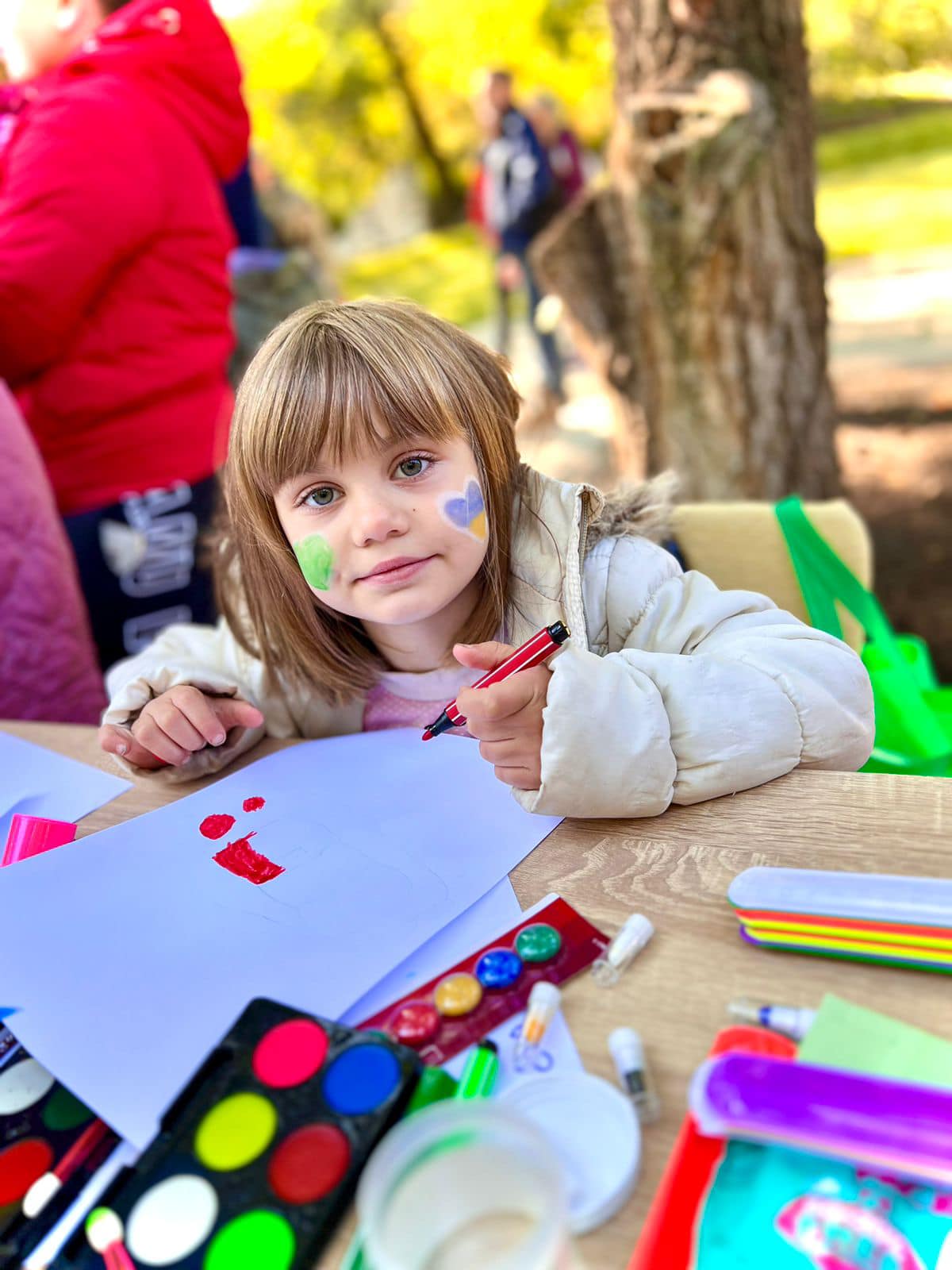 На окремій локації юні художники ділилися своїми творчими здібностями: малювали малюнки для наших воїнів та ставали моделями жовто-блакитного аквагриму!