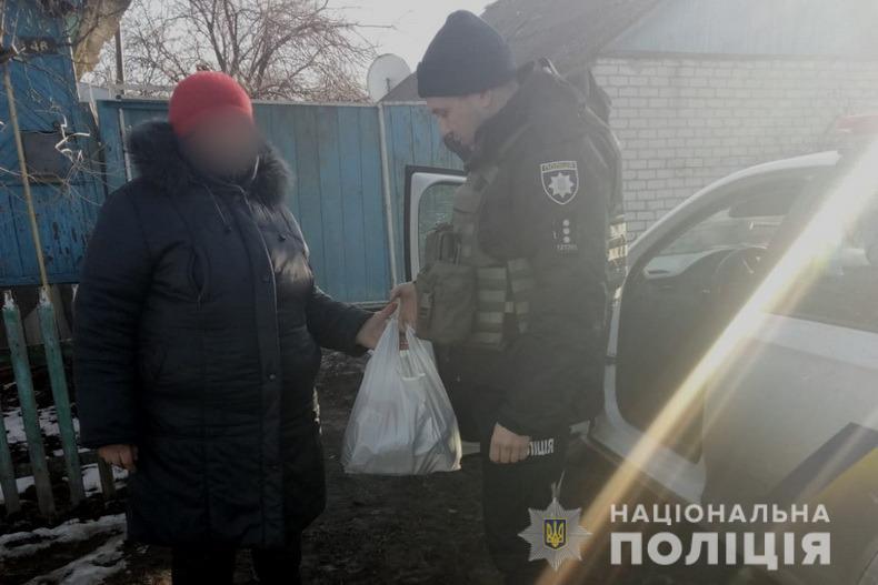 Крім виконання своїх функціональних обов’язків поліцейські продовжують допомагати громадянам вижити у цей не легкий час, доставляючи за їх місцем мешкання гуманітарні набори з продуктами харчування та медикаментами.
