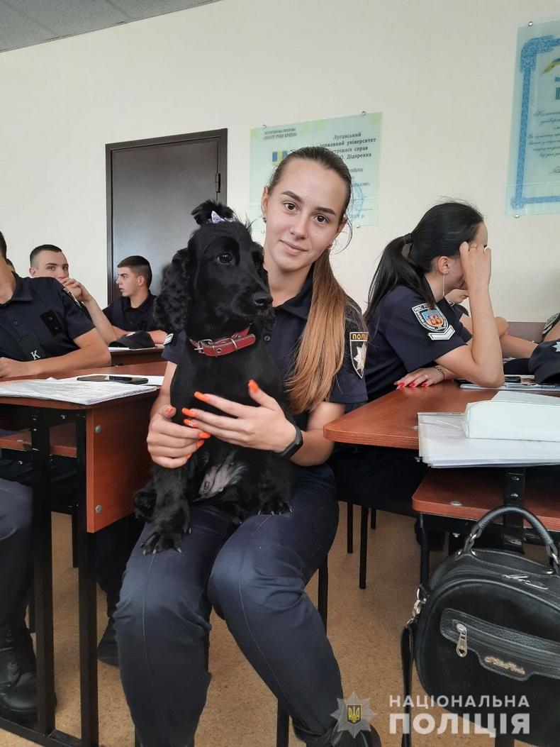 Поліцейські розповіли курсантам про вибухонебезпечні предмети та про заходи безпеки при їх виявленні, показали макети смертоносних боєприпасів, а також познайомили зі своїм чотирилапим пухнастим товаришем по службі «Міккі».