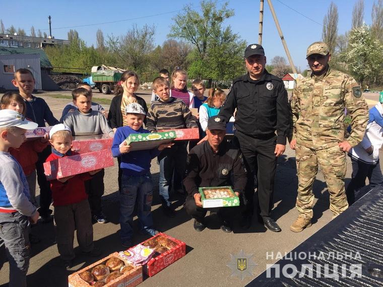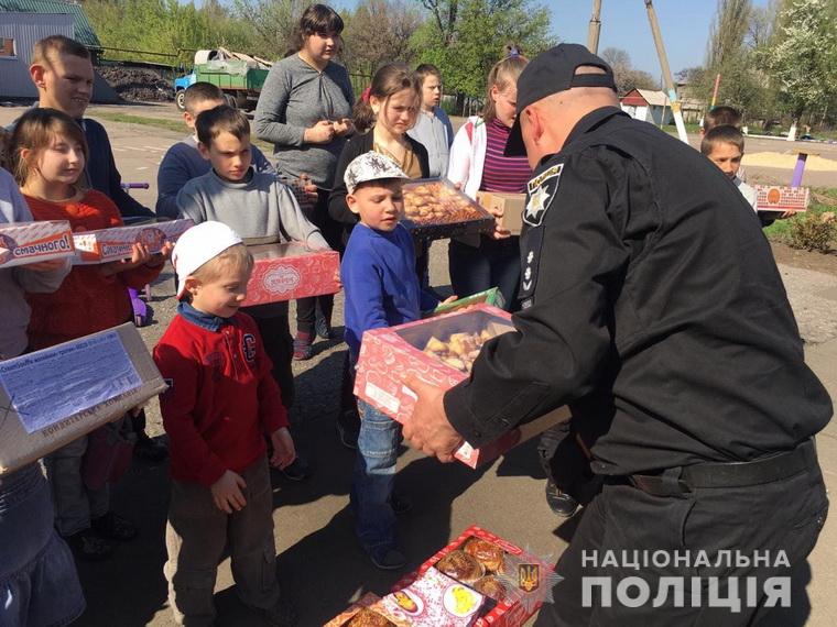 Поліцейські поспілкувалися з хлопчиками та дівчатками та на святковий стіл передали малечі кулечі, яйця крашанки та солодощі.