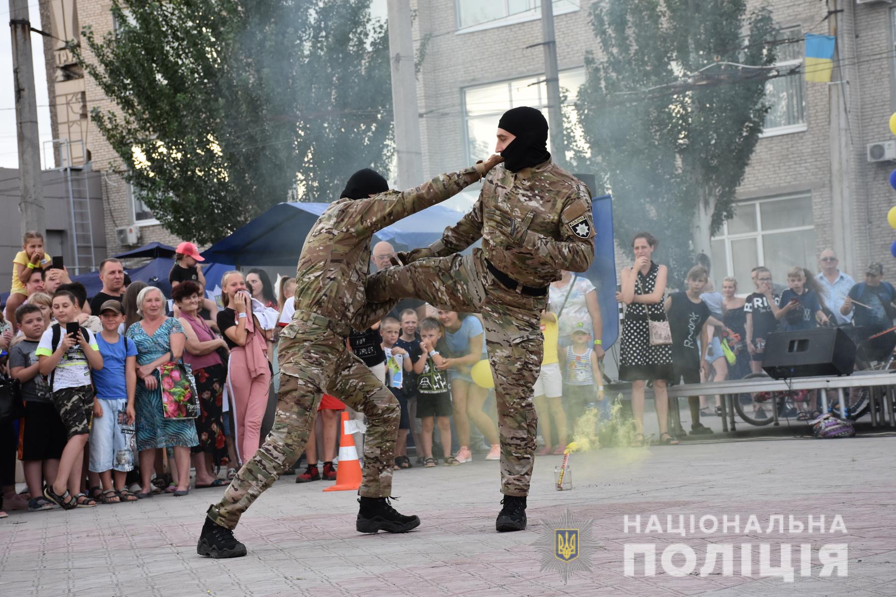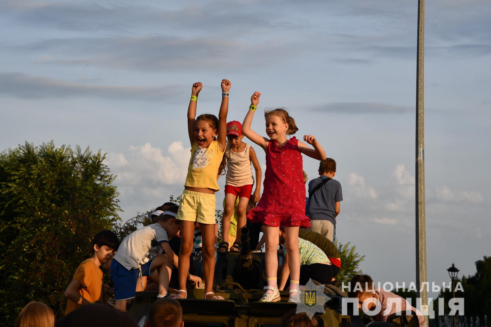 Веселий настрій всім присутнім забезпечили аніматори та дитячі поліцейські, які провели для маленьких і дорослих розважальні ігри та конкурси. А виступи поліцейського ансамблю «Патруль» та музикантів оркестру ГУНП всі присутні підтримували бурхливими оплесками та запальними танцями.
