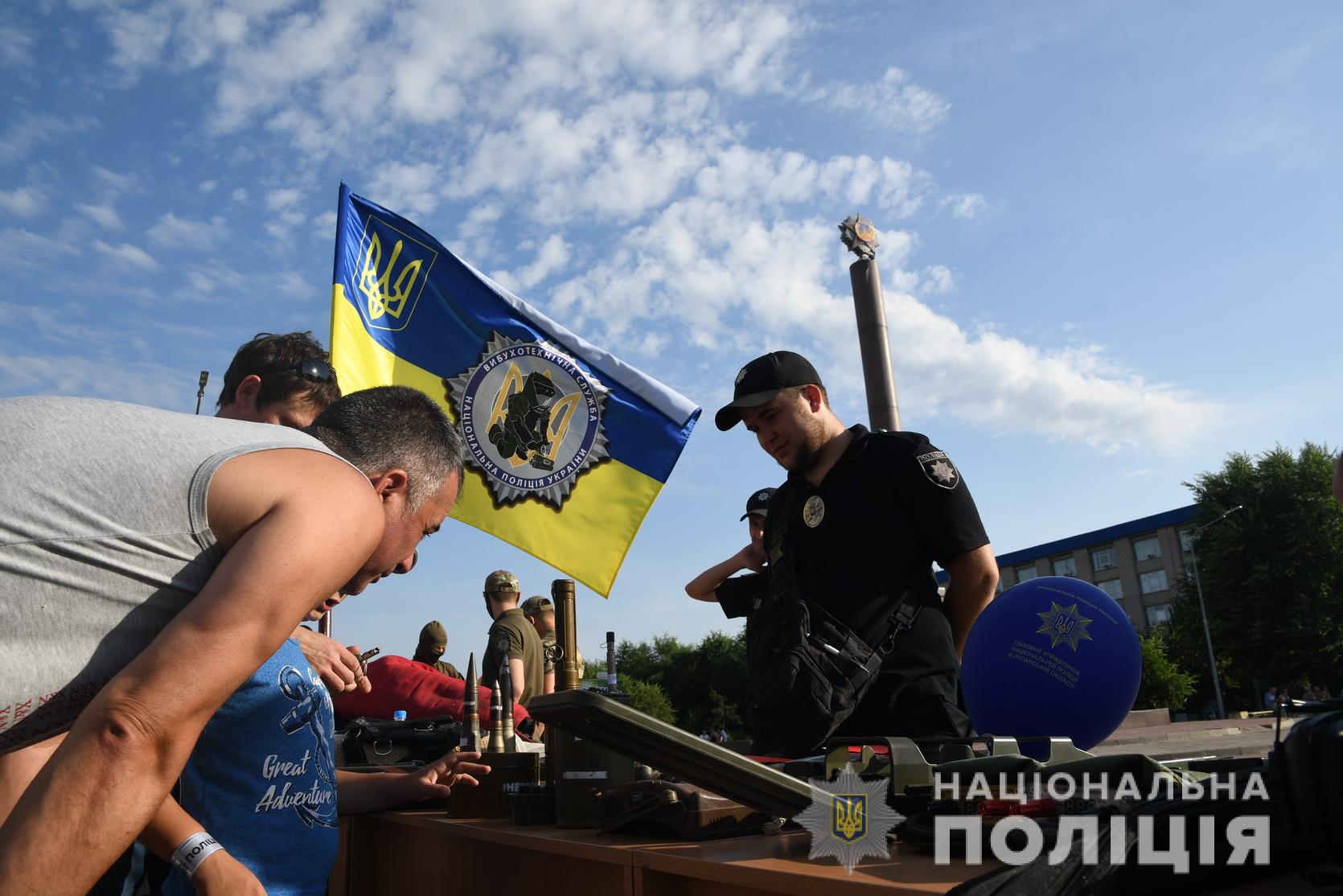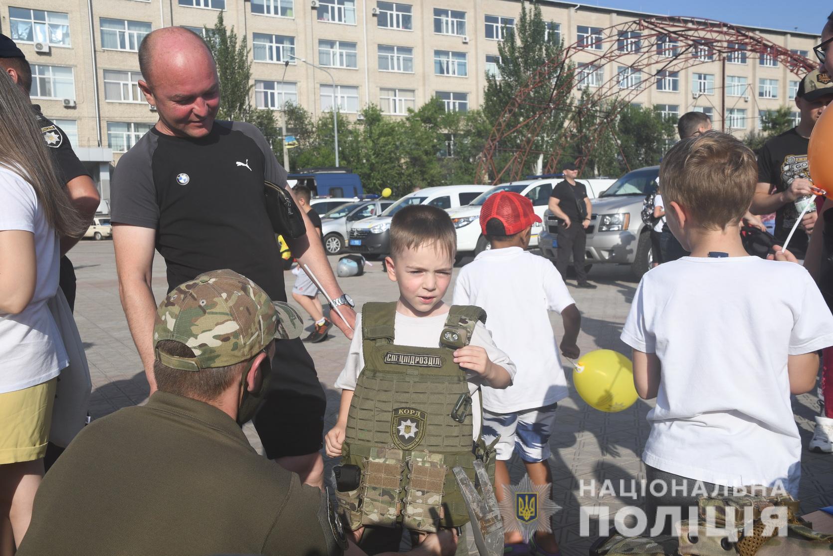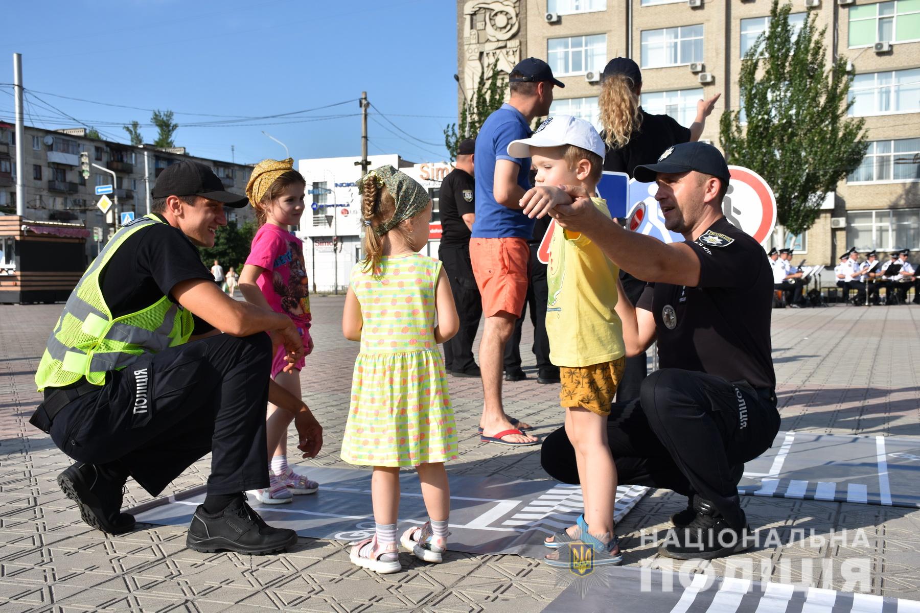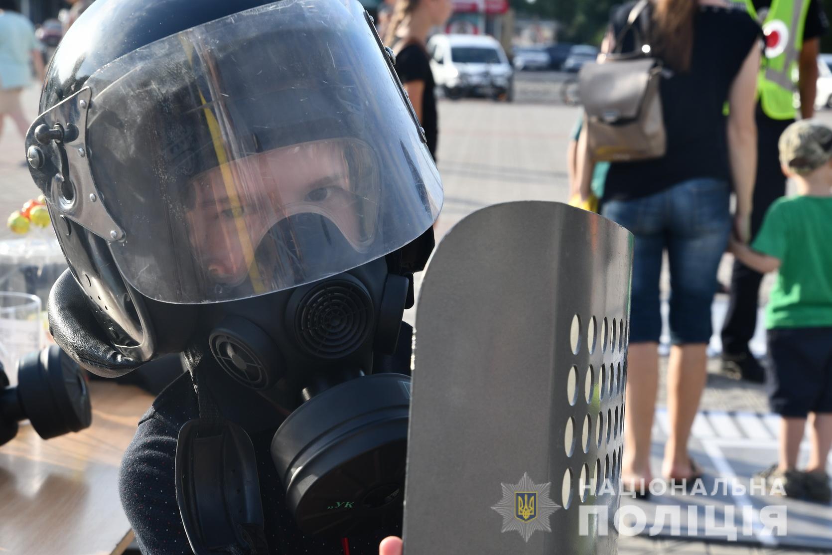 На площі Миру м. Сєвєродонецьк було розгорнуто поліцейське містечко, де кожен охочий міг, нехай і на кілька хвилинок, стати охоронцем порядку. Всі поліцейські підрозділи підготували свої локації, де показували й розказували, в чому полягає їх служба.