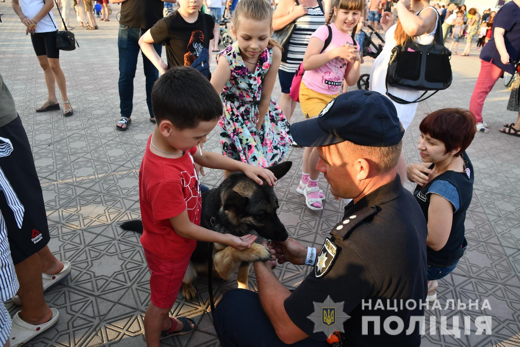 Кінологи із чотирилапими офіцерами поліції показали, як розшукують та затримують злочинців, шукають зброю, вибухівку та інші заборонені речовини. Кожен охочий міг погратися, сфотографуватися та пригостити «смаколиком» службового собаку.