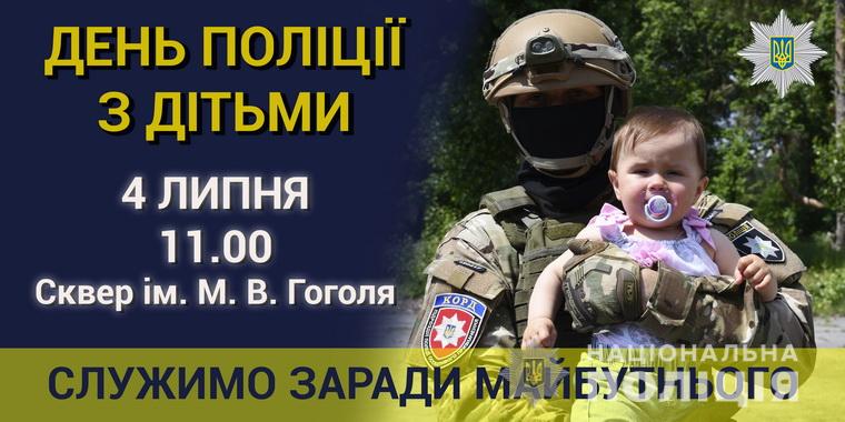Поліція Луганщини запрошує усіх мешканців м. Сєвєродонецьк та гостей разом із дітьми взяти участь у заходах, які відбудуться 4 липня о 11.00 у сквері ім. М.В. Гоголя.