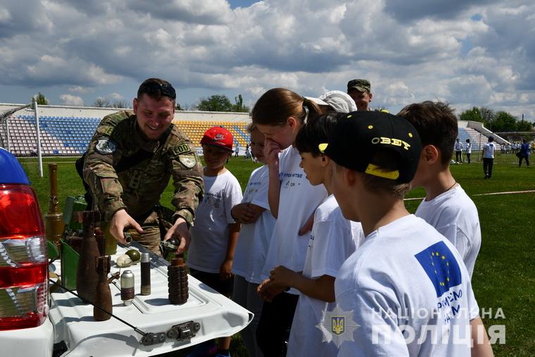 Поліцейські провели з дітьми цікаві естафети з правового виховання, безпеки дорожнього руху, а також нагадали дітям правила поводження у разі виявлення вибухонебезпечних предметів.