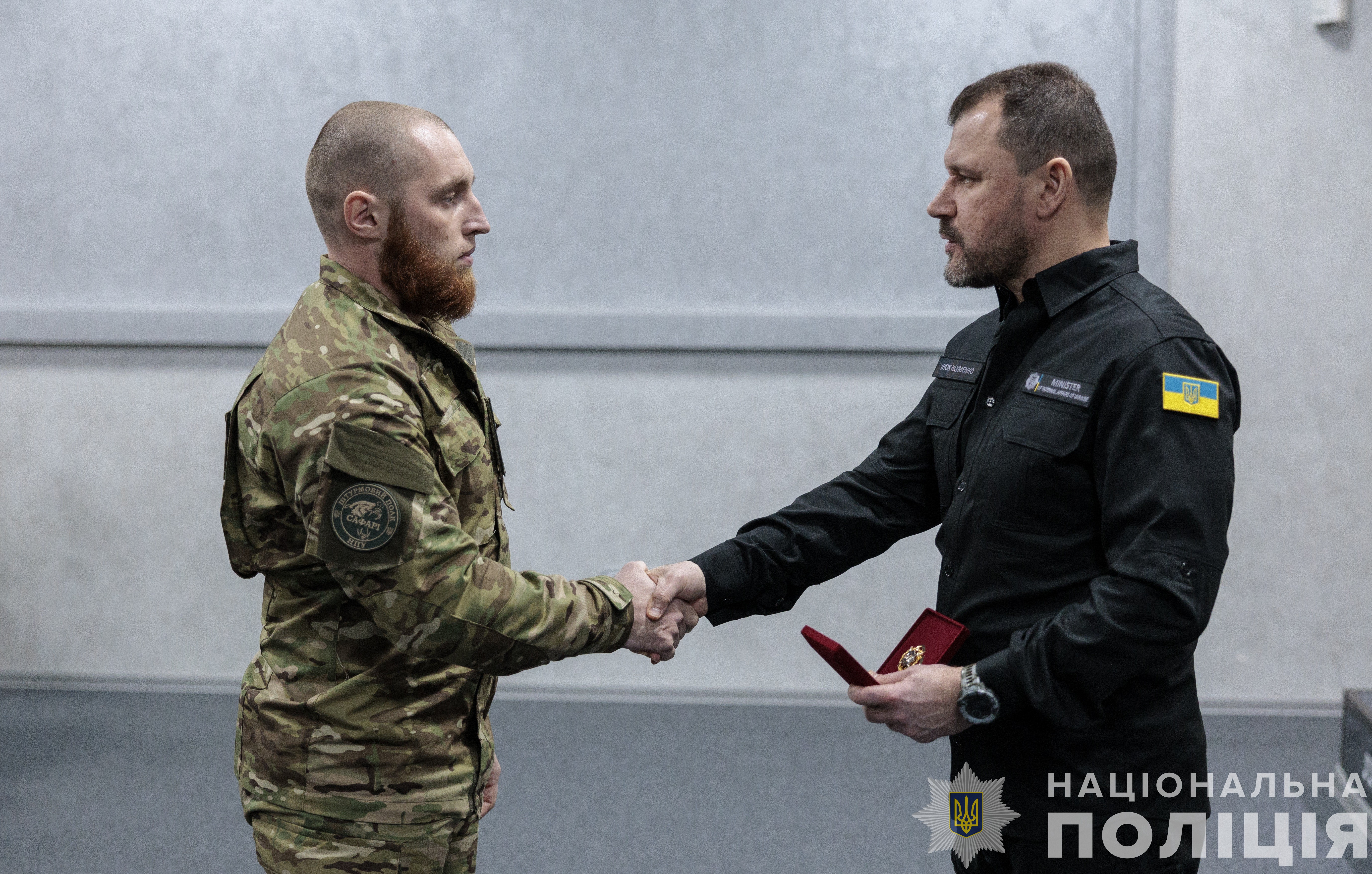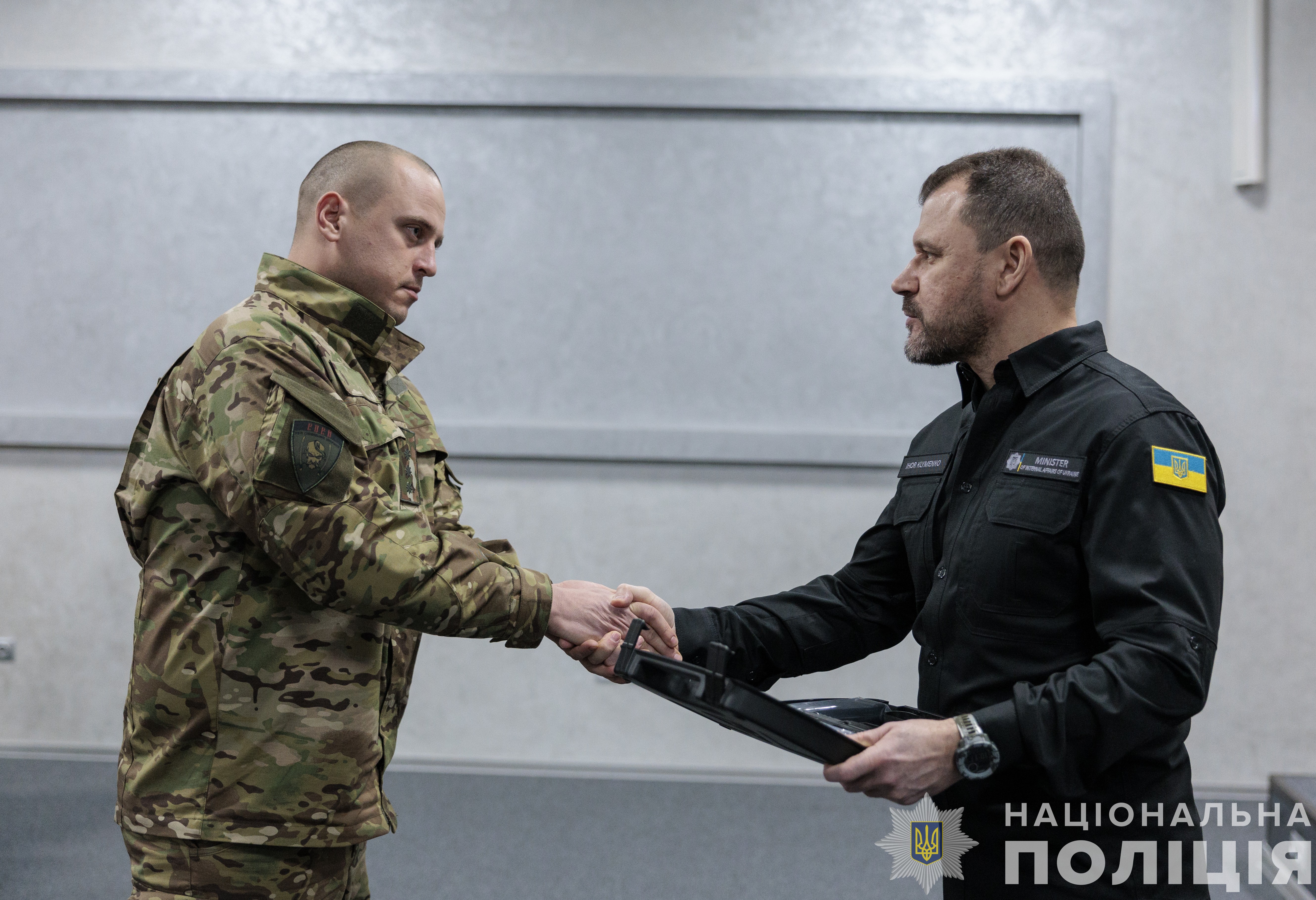 Міністр внутрішніх справ України Ігор Клименко вручив їм відомчі заохочувальні відзнаки МВС та оголосив хвилину мовчання в пам'ять загиблих воїнів, які віддали за Україну найцінніше – своє життя.
