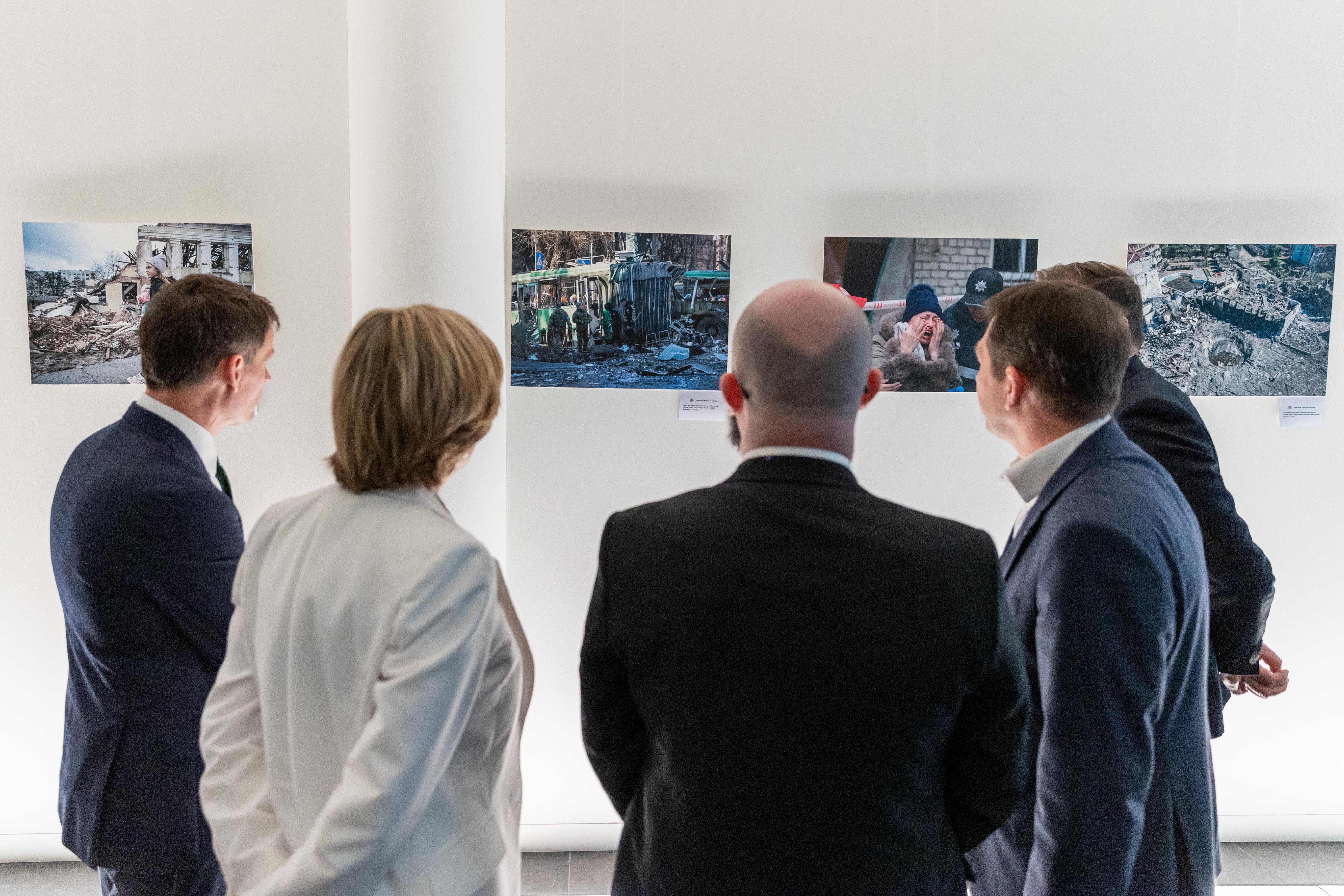 Посол Максим Кононенко зауважив, що виставка демонструє ціну, яку платить Україна у боротьбі за свою свободу та європейський вибір, відстоюючи загальнолюдські цінності та захищаючи вільний демократичний світ від середньовічного кривавого варварства.