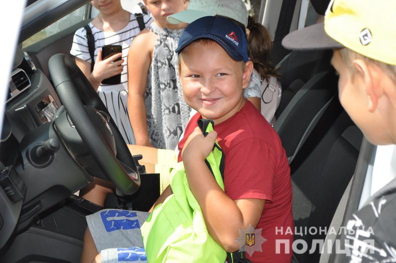 У внутрішньому дворі на школярів чекав службовий автомобіль, в якому можно було посидіти за кермом та відчути себе справжнім копом.