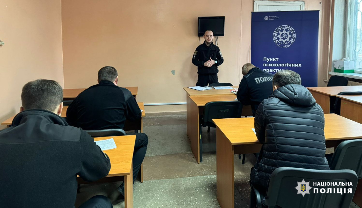 В рамках проєкту «Пункт психологічних практик» поліцейський-психолог провів для колег з різних підрозділів лекцію-тренінг. Під час заходу кожен з учасників мав змогу поглибити свої знання щодо станів та симптомів вигорання.