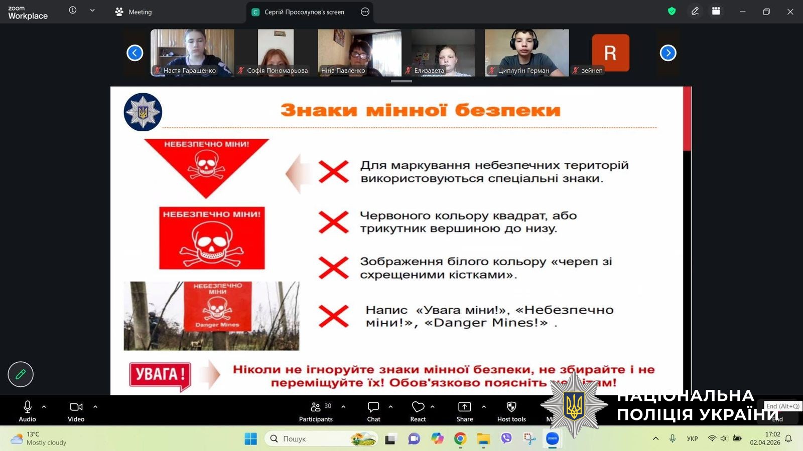 Онлайн-формат дозволив дітям активно долучатися до спілкування, а знання з мінної безпеки допомагають зберегти життя та уникнути небезпеки.