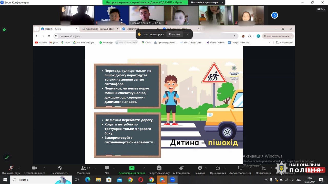 Тривають онлайн-уроки на безпекову тематику в закладах освіти Луганської області. На цьому тижні ювенальні поліцейські провели для школярів уроки з безпеки дорожнього руху.