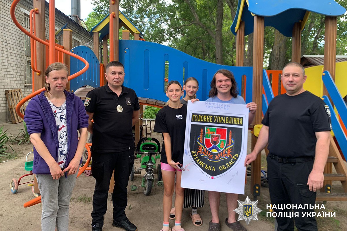 З нагоди Дня Національної поліції України ювенальні поліцейські Головного управління Національної поліції в Луганській області завітали до одного з шелтерів у місті Дніпро, де тимчасово проживають внутрішньо переміщені особи з дітьми. Зустріч пройшла у форматі патріотично-просвітницького заходу, який об’єднав теми безпеки, творчості та любові до рідного краю.