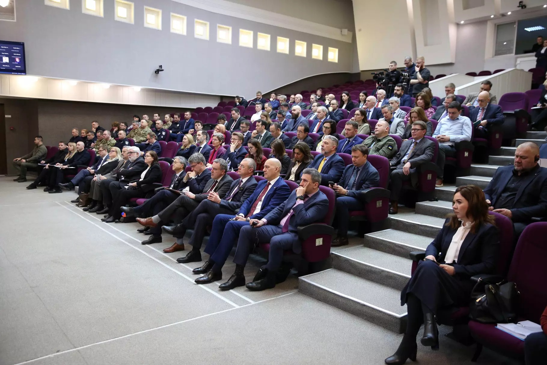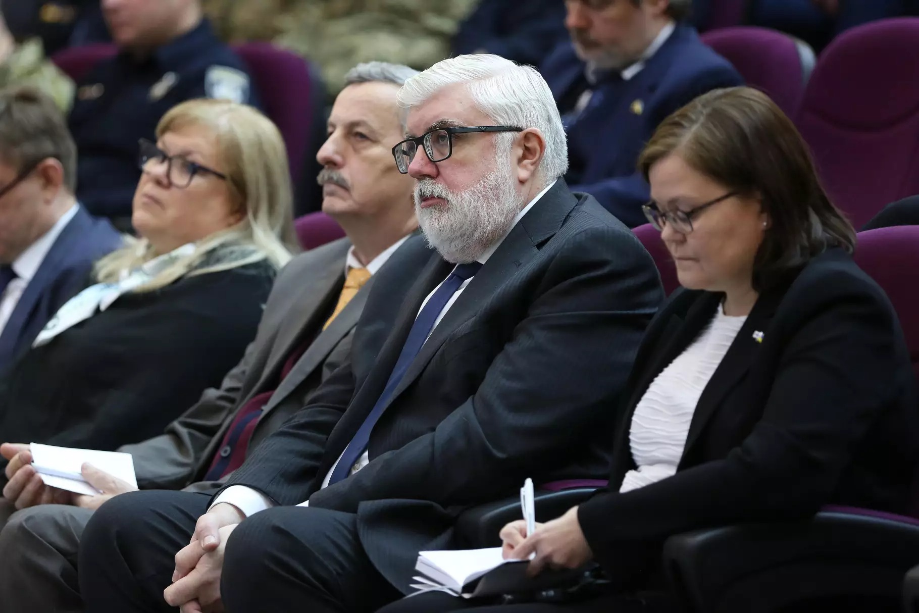До гостей звернувся Міністр внутрішніх справ України Ігор Клименко, який детальніше розповів присутнім про розбудову нової архітектури безпеки України за допомогою органів системи МВС.